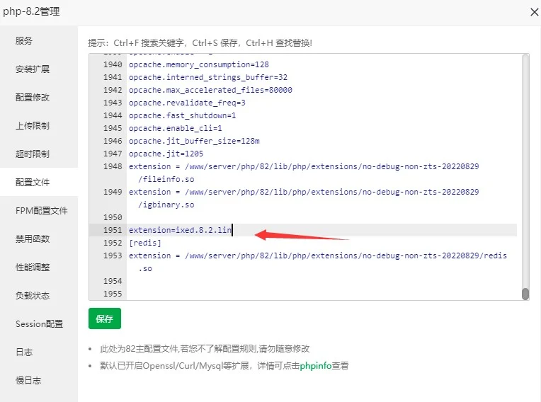 如果你下载的是PHP8.2的就是extension=ixed.8.2.lin
